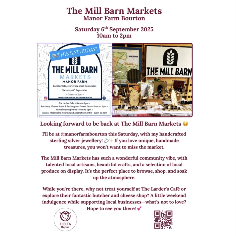 Manor Farm Bourton, BuckinghamI’ll be at @manorfarmbourton this Saturday, with my handcrafted sterling silver jewellery! ✨ If you love unique, handmade treasures, you won’t want to miss the market. The Mill Barn Markets has such a wonderful community vibe, with talented local artisans, beautiful crafts, and a selection of local produce on display. It’s the perfect place to…