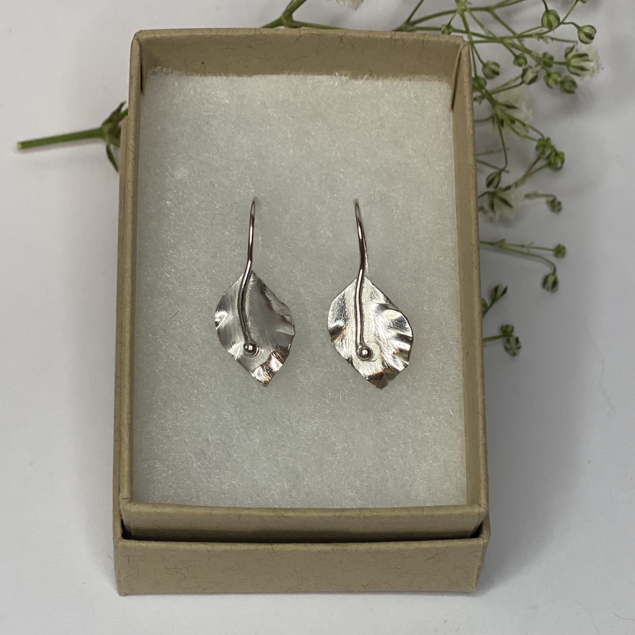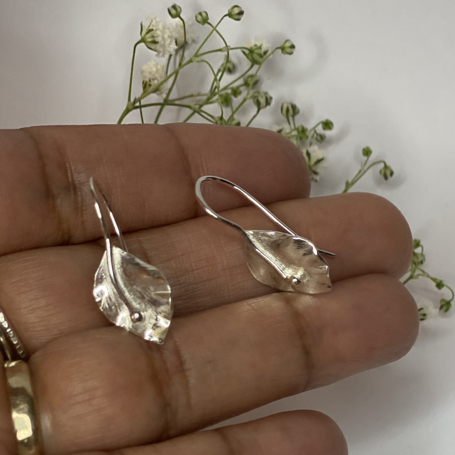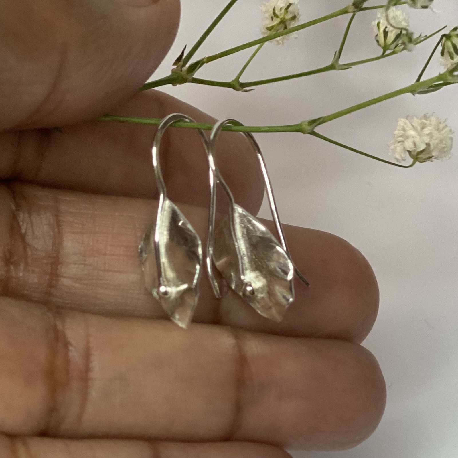 Small sterling silver dangly earrings with a simple, elegant design. Light and graceful, a beautiful piece for any occasion.
