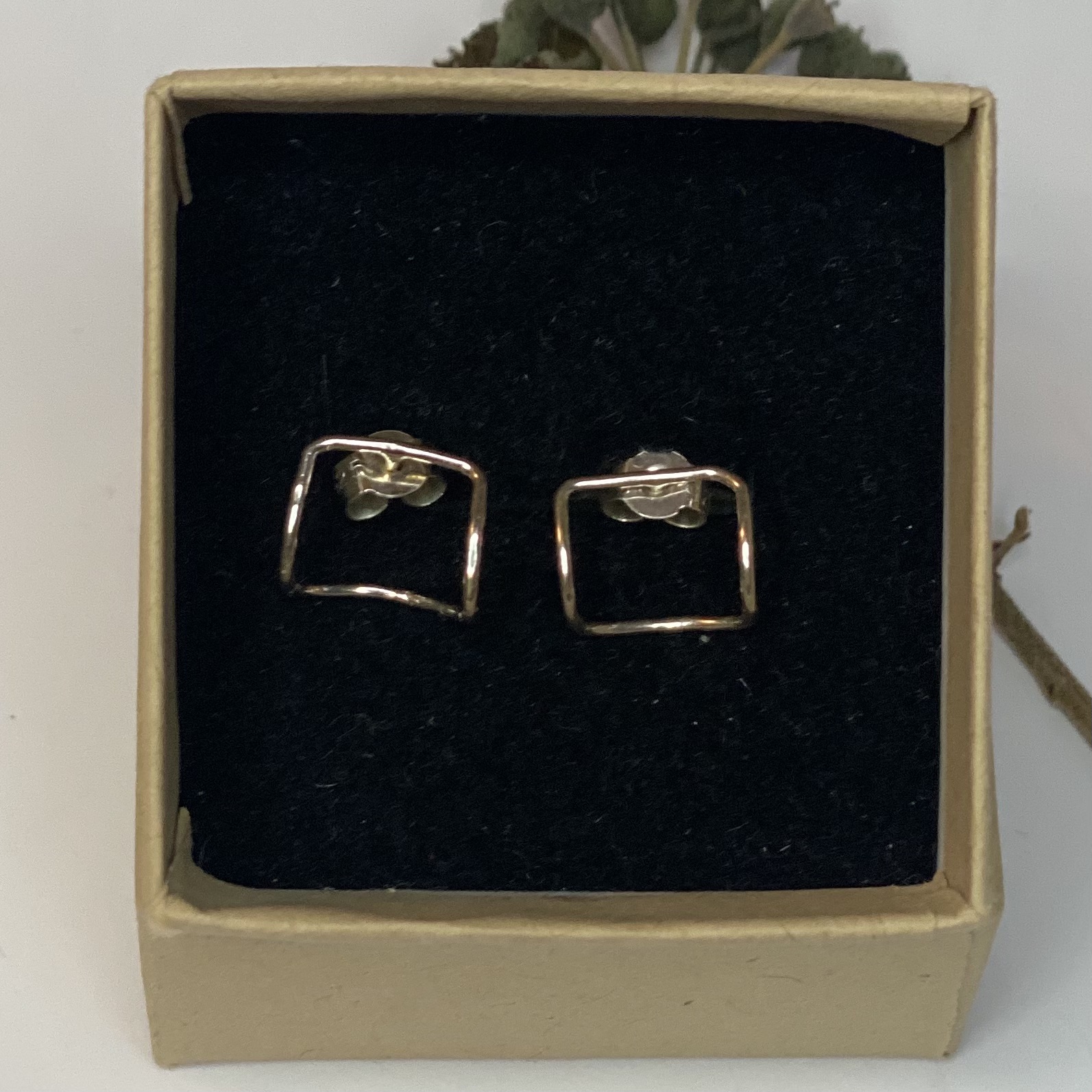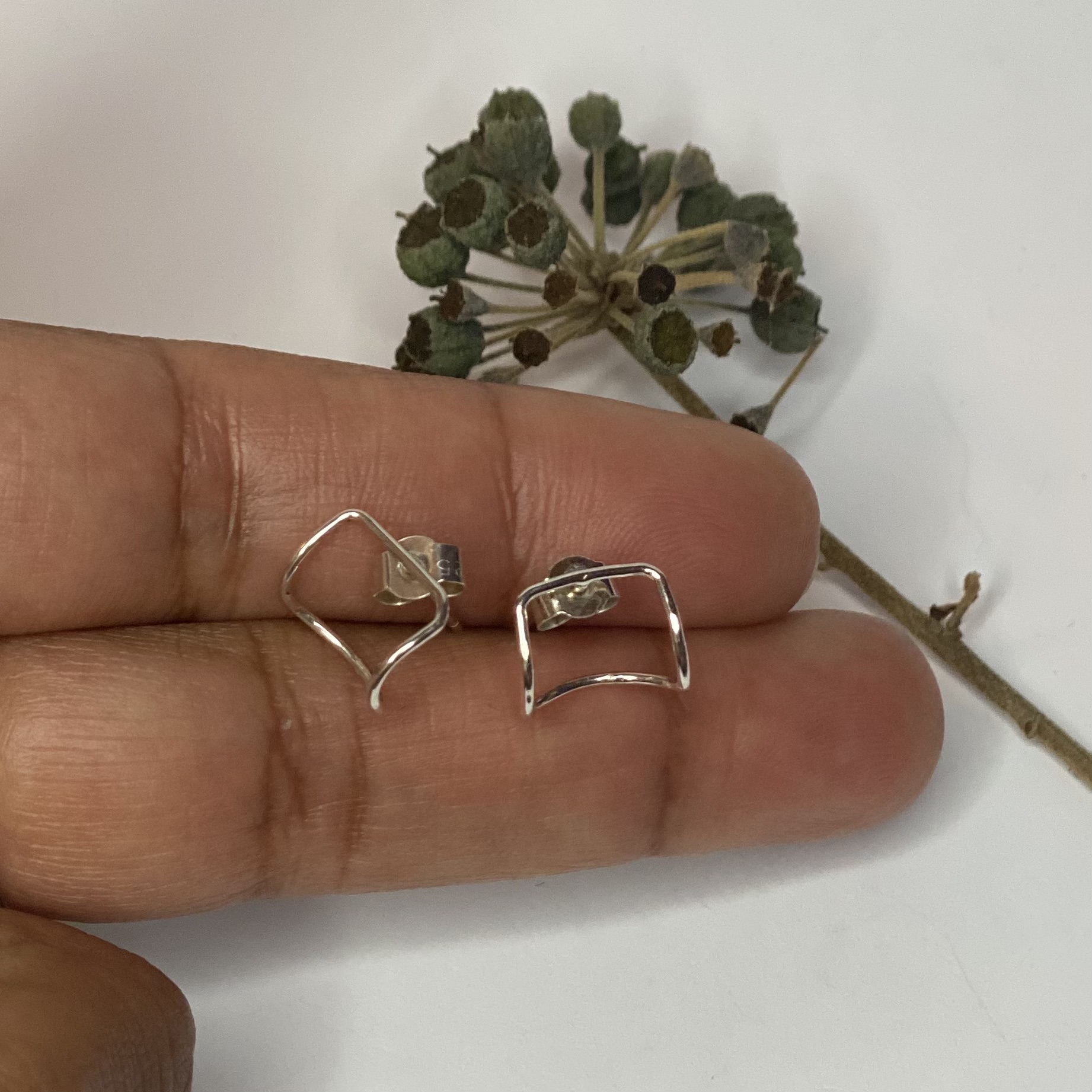 Earrings – Sterling Silver Wire Square Curved Stud Earrings